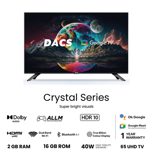 Dacs Crystal Premium 65" QLED Ultra HD (4K) Google TV with 40W Dolby Audio and 2GB Ram (Metallic Bezel Less,2025)