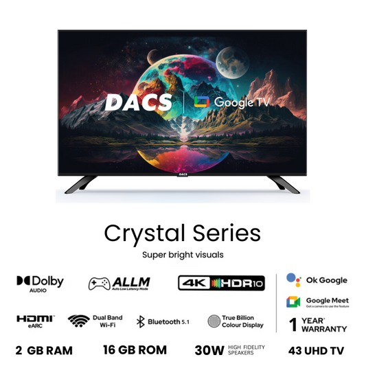 Dacs Crystal Premium 43" QLED Ultra HD (4K) Google TV with 30W Dolby Audio and 2GB Ram (Metallic Bezel Less,2025)